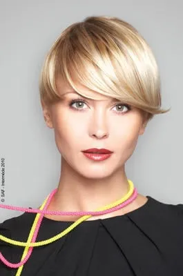 Une coupe courte et moderne, très sensuelle et tout en volume. Coupe réalisée à l'effilage avec opposition de longueur.