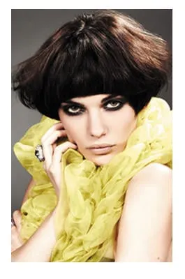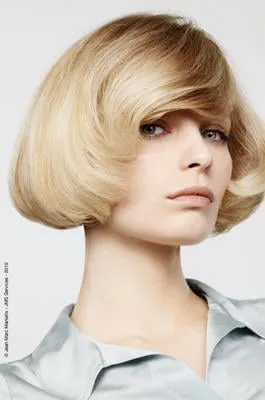 Une coupe boule très féminine, à la nuque courte. Le dessus de tête et la frange sont laissés longs et travaillés vers l'avant. Un coiffage lisse est de rigueur.