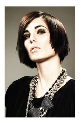 Un carré court dégradé sur l'ensemble de la chevelure pour obtenir un volume arrondi. La mèche ovalisée donne toute la douceur de ce carré. Le coiffage est réalisé à l'aide de la brosse ronde et d'un lait spécial brushing pour un côté glamour.
