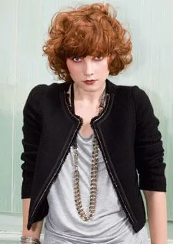 CAMILLE ALBANE : le roux se la joue insolent avec cette coupe combinant boucles et frange au ras des yeux.