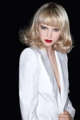 Longueur et volume sophistiqué, le brushing à la brosse ronde met en valeur cette coupe graphique et troublante dont le blond vanillé illumine le teint.
