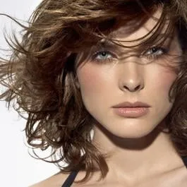 Cette coupe à la fois tendre et sauvage offre un méli mélo de mèches pour un effet volume très glamour. La frange est effilée pour adoucir le traits du visage, tandis que les longueurs ondulent très légèrement.
