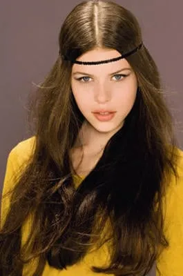Réalisée avec des extensions de cheveux ou sur vos propres longueurs après séchage naturel, cette coiffure s'accessoirise d'un bandeau noir ultra fin et brillant, tout autour de la tête, pour un look très hippie !