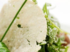 Préchauffer le four à 200°C sur fonction grill. Couvrir une plaque de four avec du papier cuisson. Posez un cercle en métal de 60 ou 80 mm de diamètre sur le papier, mettre 1 bonne cuillère à café de parmesan dans le cercle puis enlevez-le délicatement pour que le fromage reste en place. Répéter l'opération en laissant 1 à 2 cm libres entre les chips. Poivrer et saupoudrer les chips de thym. Mettre au milieu du four et laisser cuire 4 à 5 min.