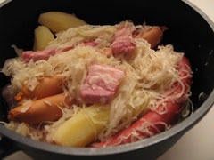 Faire bouillir les saucisses de Strasbourg à part pendant 10 minutes.