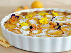 Déposer les moitiés d'abricots dans le fond du moule. Verser par-dessus la pâte à clafoutis.