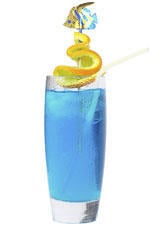 9 cl de vodka, 5 cl de liqueur d'abricot, 5 cl de Cointreau, 5 cl de curaçao bleu, 18 cl de nectar de goyave