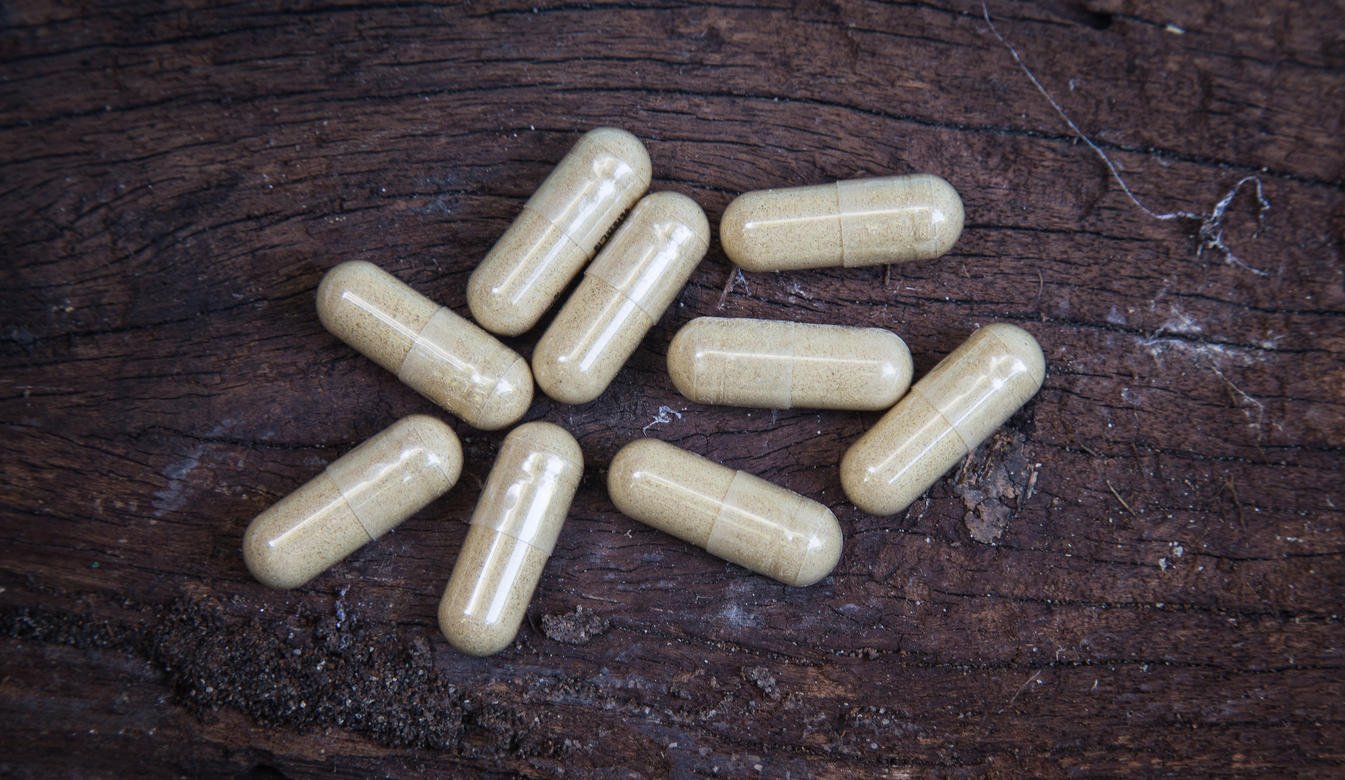many capsule pill on wooden background