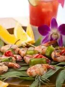Préparation : Inciser les gambas de deux tiers dans le sens de la longueur. Retirer l’intestin. Saler, poivrer.