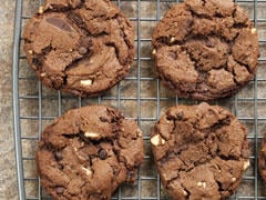 Casser les chocolats et les ajouter à la pâte. Sur un plaque, disposer du papier sulfurisé. Former des petits tas ronds avec la préparation.