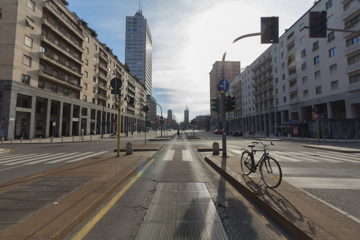 victor pisani street in milan northern italy locks down to try prevent the spread of coronavirus