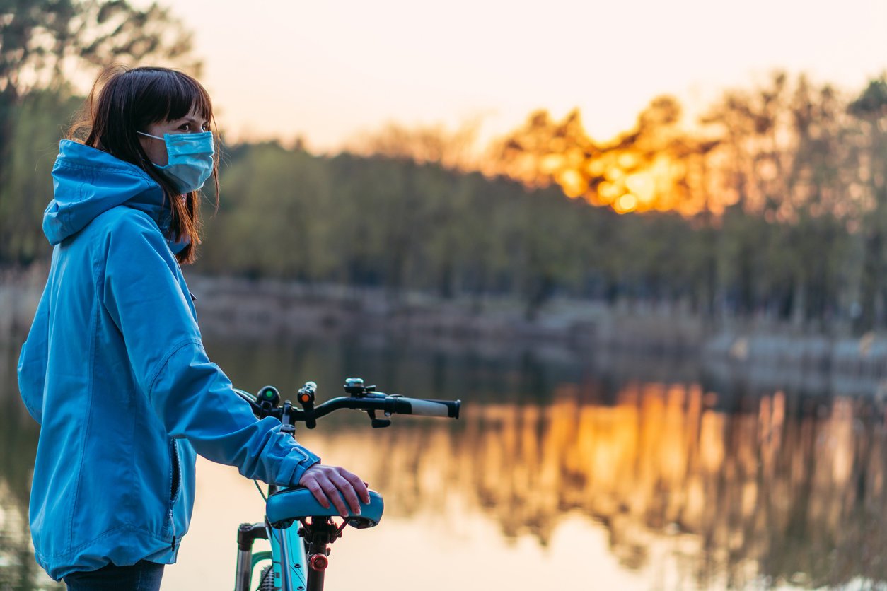 Avant et après ma pratique cycliste, je porte un masque