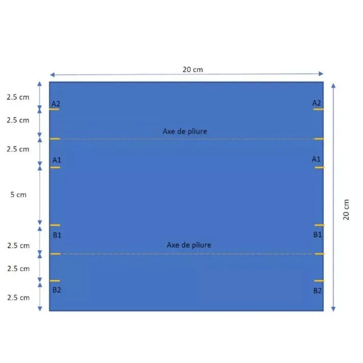 Suivant le schéma ci-dessus, voici ce dont vous avez besoin pour réaliser ce masque à plis :