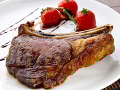 Servir les côtes de veau avec les pommes et la crème au cidre.