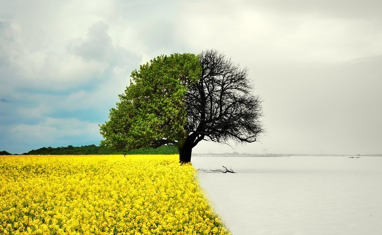 lone tree in all seasons - beautiful landscape in romania