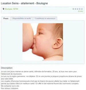 "Sur e-loue, tout se loue." Voilà les premiers mots de l'étonnant communiqué de presse que nous avons reçu à la rédaction hier. Dans celui-ci, le site explique : "La semaine dernière une utilisatrice du site [...] a déposé une annonce de "seins à louer". Elle explique vouloir rendre service aux couples d'hommes homosexuels qui n'ont pas la chance de pouvoir allaiter leur enfant, or le lait maternel apport des nutriments essentiels. Elle propose un tarif de 100 euros par jour pour une dizaine de prises." Etonnant quand même qu'un site autorise à une femme de vendre son lait alors que cette pratique est réglementée en France. Selon le code de santé publique (art L2323-1) "seuls les lactariums sont autorisés à stocker et distribuer du lait maternel" et surtout, cette activité doit être non lucrative. La location que propose cette utilisatrice est donc illégale et peut surtout être risquée pour le bébé, le lait peut très bien être contaminé par des bactéries ou des virus. Toujours dans le communiqué, Alexandre Woog, cofondateur du site de location explique avoir été "surpris" par l'annonce. Mais "après vérification de notre service modération auprès de la dépositaire de l'annonce, nous avons accepté de la publier". Déjà deux demandes de locations auraient été faites pour cette annonce en une semaine.