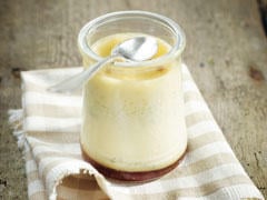 Bien remuer au fouet, puis verser la préparation encore chaude dans les verrines, sur le caramel.