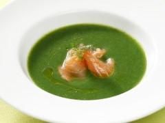 Crème de cresson, saumon mariné à l'huile de wasabi