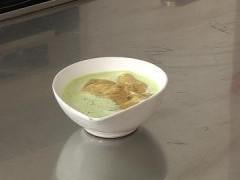 Crème de petits pois, raviole de gorgonzola et chèvre