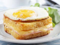 4 tranches de mie de pain, 4 tranches d'emmental, deux belles tranches de jambon, 2 œufs, un peu de beurre.