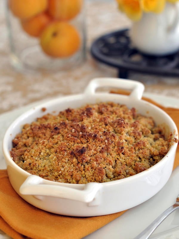 Dans un moule, disposer le mélange abricot-amandes et recouvrir de pâte.