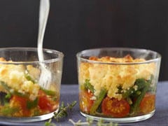 Couvrir les légumes avec la pâte à crumble, en formant une couche bien uniforme, sans la tasser.