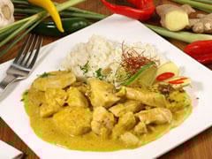 Mélanger le curry, le Colombo et le gingembre dans une assiette.
