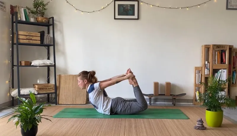Cette position appelée également "pose d'arc", apaise le pancréas. Reproduire la posture dhanurasana aide donc l'organe à fabriquer de l'insuline.