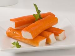 Si au Japon, le surimi se composait de chair de crabe, en Occident il s'agit plus de chair de pattes de crabe, de queues de langouste, de bouchées de crabe, de crevette... à laquelle sont ajoutés des liants (généralement un peu de fécule), des arômes et du blanc d'oeuf. Les bâtonnets sont ensuite colorés en "orange".