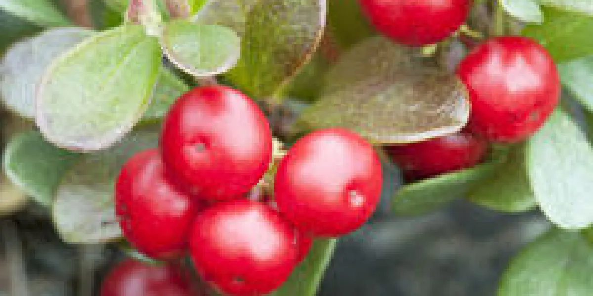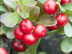 La busserole est un sous-arbrisseau toujours vert, à tiges rampantes, qui forment des massifs denses d’environ 30cm de haut. Ses feuilles sont ovales, vert foncé dessus et vert-jaune en dessous, et luisantes. Les fleurs, rassemblées en grappes, forment des petits grelots blancs ou rosés. Les fruits sont des baies rouge vif à 5 noyaux.