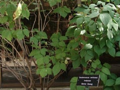 Cet arbuste peut atteindre 3 mètres de hauteur. Ses branches sont grises et ses feuilles palmées comptent cinq doigts. L’éleuthérocoque donne des fleurs jaunes et violettes.