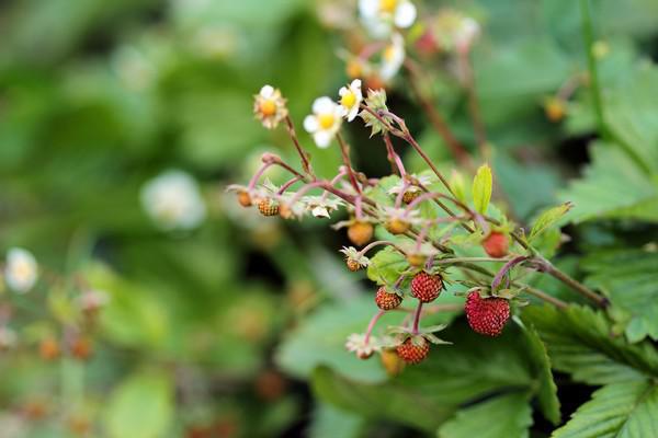- Le fraisier est un petit arbuste facilement reconnaissable grâce à son fruit, la fraise. Mais on peut voir entre ses feuilles, des petites fleurs blanches à quatre pétales.