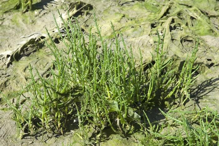 La salicorne est une plante comestible originaire d’Europe qui mesure généralement entre 10 et 40 cm de hauteur. Sa tige charnue, qui peut se dresser verticalement ou être rabattue, possède de nombreuses ramifications et est complètement glabre (elle n’est pas recouverte de poils). On la trouve près des côtes et dans les marais salés.