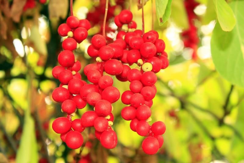 Originaire du nord-est de la Chine, le schizandra est une plante grimpante dotée de feuilles ovales qui ont une pointe effilée et mesurent entre 5 et 10 cm de long. Ses petites fleurs roses sont suspendues au bout du pédoncule. Son fruit, dont la coloration varie du rouge au rose, se récolte en automne et devient pourpre une fois séché.