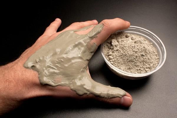 Verser une demi-cuillère à soupe d’argile en poudre dans un récipient, y ajouter un peu d’eau. Mélanger pour obtenir une pâte homogène.