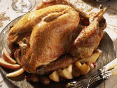 Découpez la dinde et la farce, servez avec la sauce dégraissée à part.