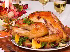 Dégraissez le jus de cuisson. Découpez la dinde et la farce, servez avec la sauce dégraissée.