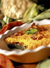 1 petit chou-fleur, 500g de feuilles d'épinards, 600g de potiron, 200g de girolles, 400g de champignons de Paris, 30cl de crème fraîche épaisse, 2 œufs + 1 blanc d'œuf, 50g de fromage râpé, 50 g de beurre, sel, poivre.
