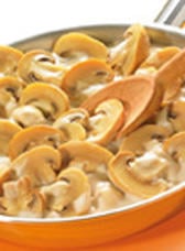 Environ 5 min avant la fin de cuisson de vos escalopes de veau, verser le contenu de la boîte d'émincé de champignons de Paris dans une poêle chaude sans ajouter de matière grasse.