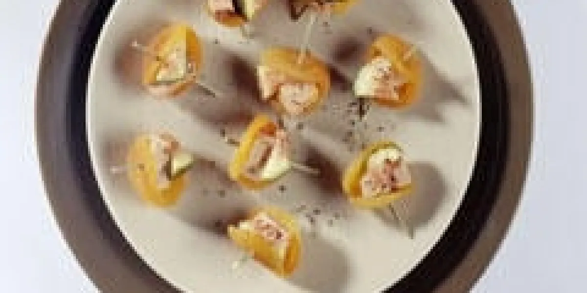 € Versez la semoule dans une assiette creuse, ajoutez du sel et du poivre. Détaillez le foie gras en quatre escalopes, enrobez-les de semoule assaisonnée, réservez.