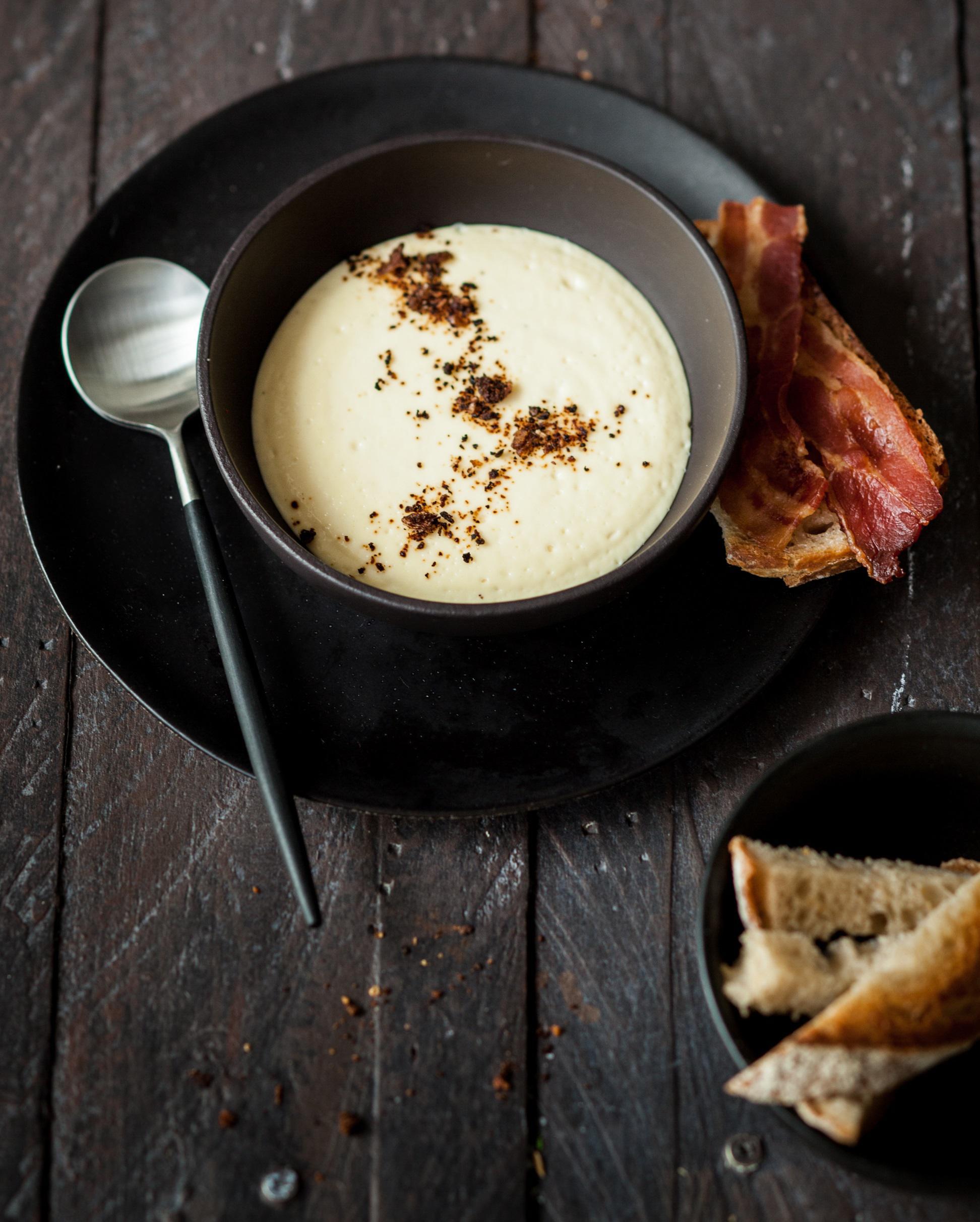1- Mettre l’espuma de Maroilles dans des petites verrines et parsemer par-dessus des cendres d’oignons.