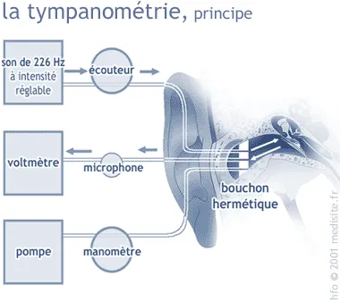 Cette sonde qui comprend trois tuyaux est introduite dans le conduit auditif externe. Le premier fait varier la pression, le deuxième enregistre les variations d’énergie sonore, le troisième envoie de l’énergie sonore.