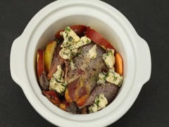 Ajouter l'autre moité des pommes et l'autre oignon émincé puis laisser cuire de nouveau pendant 30min. Récupérer ensuite le jus de cuisson pour le faire réduire avec une cuillère à soupe de crème fraîche épaisse.