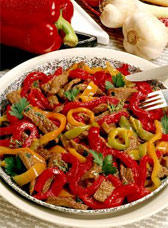 500 g de faux-filet émince, 1 poivron rouge, 20 cl d'eau, 2 grosses cuillères à soupe de miel, un peu de sauce soja (selon votre goût), un peu d'huile, du tabasco doux, sel, poivre