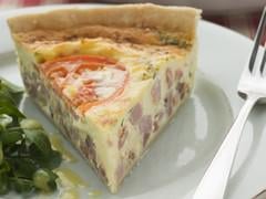 2. Mélanger l’ensemble des aliments (farine, œuf, lait écrémé, fromage râpé et jambon coupé en morceaux).