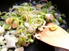 Couper les blancs de poireaux en tronçons et les laver.