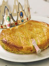 1 pâte feuilletée prête à dérouler, 150 g de farine, 200 g + 80 g de fromage blanc 0 % en faisselle, 1/2 sachet de levure chimique, 2 œufs , 100 g d'amandes en poudre, 2 cuillères à café d'extrait d'amande amère, 3 cuillères à soupe d'édulcorant, liquide de cuisson (style Hermesetas), lait écrémé, une fève