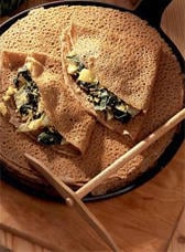 Dans une crêpière, faire chauffer un peu de beurre, placer une galette et, dans le milieu, versez un quart de la préparation au saumon.
