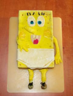Prener la jaune, l'étaler entre deux papiers cuisson et recouvrir votre gâteau. N'étalez pas trop fin.