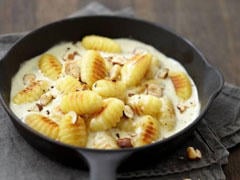 Faire cuire les gnocchis dans l'eau bouillante salée. Dès la remontée à la surface, les récupérer avec une écumoire et les disposer dans la fondue. Mélanger.